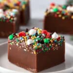 Deliciously simple and festive, these 3-Ingredient Christmas Fudge Squares combine smooth semi-sweet chocolate with creamy sweetened condensed milk and a colorful sprinkle or peppermint candy topping. Perfect for holiday gifting or a quick sweet treat, this easy fudge requires no baking and sets in the refrigerator to create rich, creamy squares that melt in your mouth.