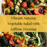 Keywords: Autumn vegetable salad, saffron dressing, charred vegetables, healthy salad, vegetarian, seasonal vegetables