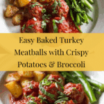 Keywords: turkey meatballs, baked meatballs, crispy potatoes, broccoli side, healthy dinner, easy family meal