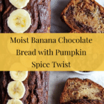 Keywords: banana bread, chocolate banana bread, pumpkin spice banana bread, moist banana bread, homemade banana bread, easy banana bread recipe