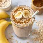 Keywords: Banana smoothie, peanut butter smoothie, healthy smoothie, vegan smoothie, oat milk smoothie, breakfast smoothie, rolled oats smoothie