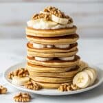 Delicious and healthy Banana Walnut Pancakes made with almond flour and cinnamon, perfect for a quick and nutritious breakfast that balances natural sweetness with a satisfying crunch.