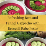 This Beet and Fennel Gazpacho with Broccoli Rabe Pesto is a vibrant and refreshing cold soup perfect for warm days. It combines roasted beets and fennel with a bright, herbaceous pesto for a deliciously unique twist on traditional gazpacho.