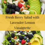 This refreshing Berry Salad with Lavender Lemon Vinaigrette combines fresh mixed berries, crunchy almonds, creamy goat cheese, and ripe avocado tossed in a fragrant dressing made with extra-virgin olive oil, lemon juice, garlic, honey, and a hint of dried lavender. A perfect light and vibrant salad for warm weather or a healthy snack.