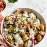 Keywords: roasted potato salad, potato salad with bacon, roasted baby potatoes, summer salad, picnic salad, easy potato salad recipe