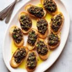 - Serve: Transfer the tapenade to a serving dish and serve alongside the prepared crostini for guests to spoon on top and enjoy.