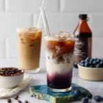 Store any leftover blueberry syrup in an airtight container in the refrigerator for up to one week. Reheat gently or use cold for your iced latte. Prepare espresso fresh when ready to serve for best flavor.