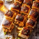 These Buffalo Chicken Dip Sliders combine tender shredded chicken tossed in spicy buffalo sauce with creamy cheeses and fresh herbs, all packed into soft dinner rolls for a perfect party appetizer or game day snack. Baked with a buttery, flavorful topping and optional pickled jalapeños, these sliders are irresistibly melty and spicy, offering a delicious twist on classic buffalo chicken dip in slider form.