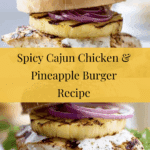 Keywords: Cajun chicken burger, pineapple burger, grilled chicken, spicy chicken burger, summer BBQ, easy burger recipe, grilled pineapple