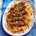 This vibrant Charred Chicken & Rice Salad features juicy, marinated chicken thighs grilled to perfection and served atop a hearty combination of cabbage and corn slaw, brown butter pilaf, and a flavorful tahini dressing. Enhanced with harissa sticky onions and a zesty seedy gremolata topping, this dish balances smoky charred flavors with fresh, bright accents for a wholesome and satisfying meal.