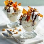 - Assemble and Serve: Break the cooled peanut brittle into shards. Serve the banana ice cream in bowls, sprinkle with peanut brittle shards, and drizzle with the melted dark chocolate. Enjoy immediately.