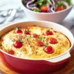 This easy cheesy bake is a comforting, savory dish perfect for a family meal or brunch. Featuring tender spinach, creamy eggs, milk, and mature vegetarian cheddar baked together with cherry tomatoes for a golden, flavorful casserole. It’s quick to prepare and uses simple ingredients to create a delicious, satisfying dish.