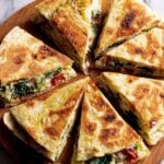 This Cheesy Tortilla Wrap recipe features soft flour tortillas layered with grated cheddar, sundried tomatoes or roasted red pepper, jalapeno chillies, and fresh coriander. Grilled to a golden crisp, it’s a quick and flavorful meal perfect for a light lunch or snack. You can easily customize it by adding cooked chicken and crispy bacon for a heartier version.