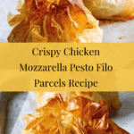 These Chicken, Mozzarella & Pesto Filo Parcels are a delicious, golden-baked appetizer or light meal, combining tender chicken, fresh basil pesto, sun-dried tomatoes, and melting mozzarella wrapped in crispy filo pastry. Perfect served with green vegetables or a fresh salad, these parcels offer a delightful blend of textures and flavors.