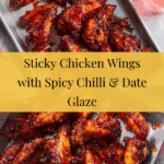 This recipe features crispy oven-baked chicken wings infused with warming spices and coated in a sticky, sweet, and spicy chilli and date caramel glaze. The wings are seasoned with cumin and sumac for a fragrant base, then baked to perfection before being brushed with a luscious date and chilli caramel sauce, finished with toasted sesame seeds for added texture and flavor.
