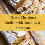 Keywords: Christmas stollen, marzipan stollen, almond stollen, festive bread, holiday baking, dried fruit bread, traditional German stollen, spiced bread