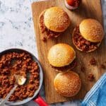 Allow the sloppy joe mixture to cool completely before transferring to an airtight container. It will keep in the refrigerator for up to 3 days. To freeze, divide into portions and store in freezer bags or containers for up to three months. Defrost overnight in the fridge and reheat gently in a pan until piping hot before serving.