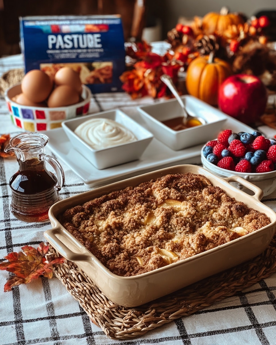 Keywords: French toast bake, breakfast casserole, make-ahead breakfast, sourdough French toast, pumpkin spice topping