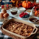 This Company’s Coming French Toast Bake is a delicious, make-ahead breakfast casserole featuring layers of sourdough bread soaked in a rich custard of eggs, milk, and cream, topped with a crumbly pumpkin-spiced streusel. Perfect for holiday mornings or weekend brunch, it offers a comforting, sweet start to your day with an easy overnight prep and baked to golden perfection.