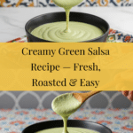 Keywords: creamy green salsa, roasted tomatillo salsa, jalapeño salsa, easy Mexican sauce, roasted salsa verde
