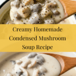 This condensed cream of mushroom soup is a rich and creamy classic that can elevate any meal. Made with fresh mushrooms and simple ingredients, it’s perfect as a comforting soup or a versatile base for casseroles and sauces.