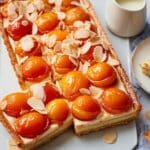 This easy apricot tart combines a flaky puff pastry base with a sweet marzipan layer and juicy apricots for a delightful dessert. Finished with a glossy apricot glaze and crunchy almonds, it’s perfect for sharing with family or friends.