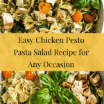 This Easy Chicken Pesto Pasta Salad is a flavorful and satisfying dish perfect for warm days or as a hearty lunch. Combining tender grilled chicken, fresh spinach, and vibrant cherry tomatoes with a bright pesto sauce creates a colorful and delicious meal that’s simple to prepare.