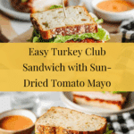 This Easy Turkey Club Sandwich is a flavorful, hearty lunch option featuring layers of turkey, crispy bacon, creamy avocado, and a zesty sun dried tomato mayonnaise, all sandwiched between slices of fresh sourdough bread or your choice of wrap. Simple to assemble and packed with savory goodness, it’s perfect for a quick meal or casual gathering.