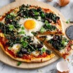 Keywords: Florentine pizza, dairy-free pizza, spinach pizza, homemade pizza dough, easy pizza recipe, Italian pizza, egg-topped pizza