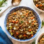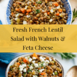 A hearty and flavorful French Lentil Salad featuring tender French green lentils, sautéed vegetables, toasted walnuts, and creamy feta cheese, all brought together with a tangy mustard vinaigrette. Perfect as a nutritious side dish or light main course.