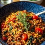 Ground Beef Orzo is a flavorful and easy one-pan meal that combines tender orzo pasta with seasoned ground beef, vegetables, and a rich tomato broth. This satisfying dish is perfect for a quick weeknight dinner and offers a balanced blend of protein, carbs, and savory spices all cooked in a single skillet.