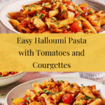 A vibrant and wholesome Halloumi Pasta featuring wholemeal penne, golden-fried halloumi cubes, sweet baby plum tomatoes, tender courgettes, and a rich tomato sauce flavored with garlic, olives, and oregano. This flavorful Mediterranean-inspired dish is perfect for a comforting weeknight meal and includes tips for easy reheating.