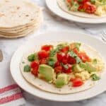 Keywords: healthy breakfast, breakfast tortillas, scrambled eggs, avocado, tomato, quick breakfast, easy breakfast recipe