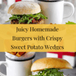 These homemade burgers paired with crispy sweet potato wedges make for a delicious and satisfying meal. Packed with flavorful spices and served with your favorite toppings, this recipe is perfect for a family dinner or casual gathering.