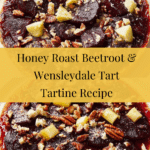 This Honey Roast Beetroot & Wensleydale Tart Tartine is a delightful combination of sweet honey-glazed beetroot and red onion, roasted to perfection and topped with flaky puff pastry. Enhanced with fragrant thyme, butter, toasted pecans, and crumbly vegetarian Wensleydale cheese, this tart makes a perfect elegant appetizer or light meal that blends earthy and sweet flavors with a crisp, golden crust.