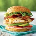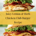 This Lemon & Herb Chicken Club Burger is a fresh and flavorful twist on the classic club sandwich. Juicy marinated chicken, crispy bacon, and creamy avocado come together for a deliciously satisfying meal perfect for a backyard barbecue or a casual dinner.