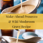 Keywords: Prosecco gravy, mushroom gravy, poultry sauce, make-ahead gravy, wild mushroom sauce, chicken stock gravy, holiday gravy