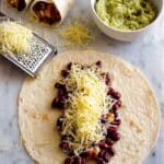 You can prepare the bean mixture in advance and assemble the wraps just before grilling to keep the tortillas from becoming soggy.