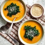 Store any leftover soup in an airtight container in the refrigerator for up to 3 days. Reheat gently on the stove or in the microwave, stirring occasionally. Keep the sesame kale topping separate and add fresh before serving to maintain its texture.
