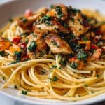 Monterey Chicken Spaghetti is a comforting and flavorful one-dish meal that combines tender, spiced chicken with a creamy, cheesy tomato sauce. It’s baked to bubbly perfection and garnished with fresh cilantro and green onions for a bright finish. Perfect for a family dinner that’s both satisfying and easy to prepare.