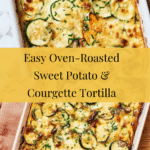 This oven-roasted sweet potato and courgette tortilla is a delicious twist on a classic Spanish dish. Packed with tender roasted vegetables and creamy eggs, it’s perfect for a light lunch or dinner. Serve it warm or cold alongside a fresh green salad for a satisfying meal.