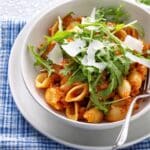Store any leftover pasta and sauce in an airtight container in the refrigerator for up to 3 days. Reheat gently in a saucepan over low heat, adding a splash of water if needed to loosen the sauce. This dish doesn’t freeze well when combined, but you can freeze the sauce separately for up to 2 months.