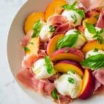 This Peach Burrata Salad with Champagne Vinaigrette is a refreshing and elegant dish perfect for summer gatherings. Sweet peaches, creamy burrata, and savory prosciutto come together effortlessly with a light, tangy dressing.