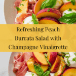 This Peach Burrata Salad with Champagne Vinaigrette is a refreshing and elegant dish perfect for summer gatherings. Sweet peaches, creamy burrata, and savory prosciutto come together effortlessly with a light, tangy dressing.