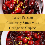 This Persian cranberry sauce offers a unique twist on the traditional version with bright citrus notes and a hint of warm spice. Thick and glossy, it’s perfect for adding a tangy, sweet-acidic punch to your holiday meals or any time you want a flavorful condiment.