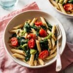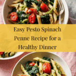 This pesto spinach penne is a quick and nutritious meal that’s perfect for busy weeknights. Combining wholemeal pasta with fresh spinach, cherry tomatoes, and vegetarian basil pesto, it’s both vibrant and satisfying.