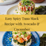 A quick and easy recipe for a vibrant Spicy Tuna Stack featuring sushi-grade ahi tuna layered with fresh cucumbers, avocado, and sushi rice. It’s dressed in a flavorful soy-sesame marinade and topped with a spicy mayonnaise, making it a perfect appetizer or light meal.