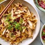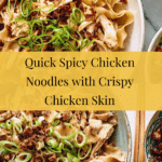 This quick and spicy chicken noodles recipe transforms leftover chicken legs into a flavorful and satisfying meal. Featuring chewy pappardelle or flat Taiwanese noodles and a spicy, garlicky sauce, it’s topped with crispy chicken skin and fresh spring onions for a perfect blend of textures and flavors. Ready in under 30 minutes, this dish is ideal for a speedy dinner with a zesty kick.