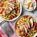 - Step 8: Slice the rested chicken and serve on top of the pasta. Finish each serving with a drizzle of extra virgin olive oil, grated parmesan, and a pinch of chilli flakes if you like.