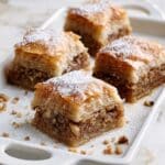 Store baklava in an airtight container at room temperature for up to 3 days. To keep it crisp, avoid refrigerating. Reheat gently in a low oven if desired, but it is delicious served at room temperature as is.